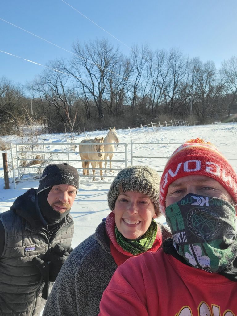 H.B.I.C., Chad, me, and some horses.Date night! Mexican food, giant margaritas and the Chiefs vs. Bills game